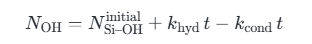 Parmi eux, khyd est la constante du taux d'hydrolyse, kcond est la constante du taux de condensation par déshydratation et est le temps de traitement. Ce modèle peut décrire quantitativement la tendance d'évolution des groupes hydroxyle avec traitement thermique ou traitement thermique humide.